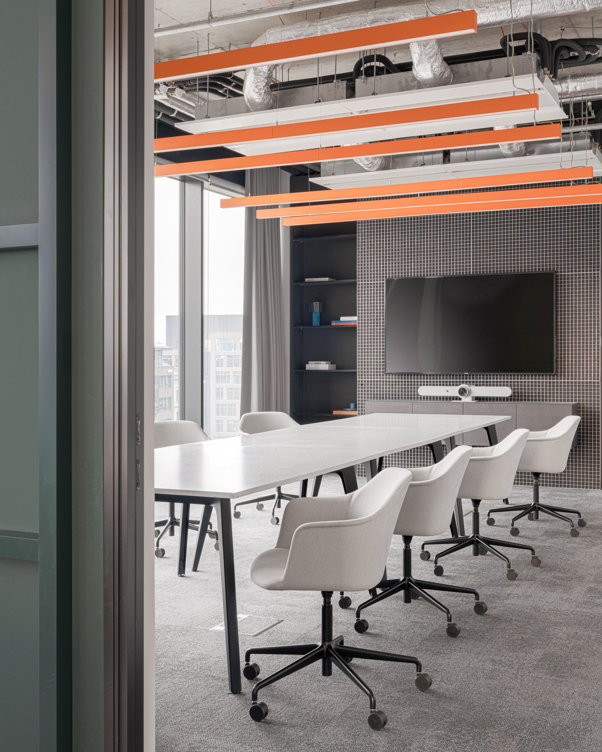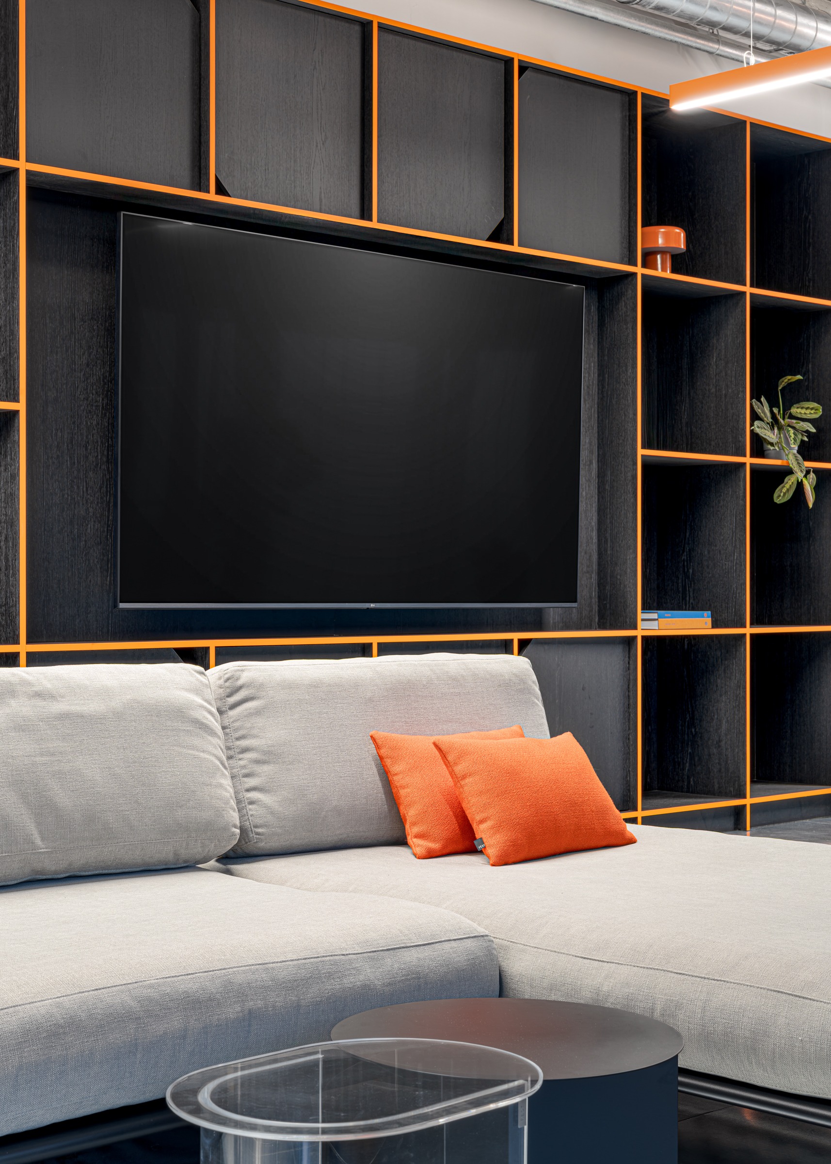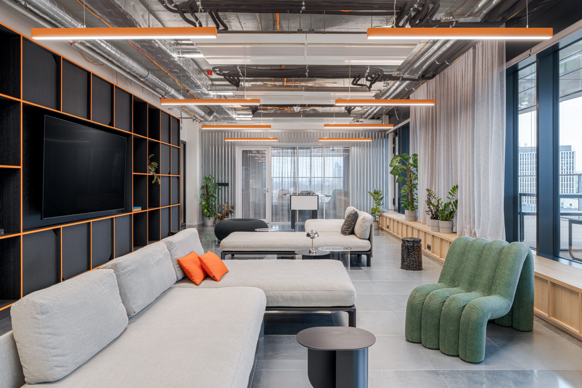 This detail was no accident—the color orange permeates the entire interior concept and references Futured’s visual identity. This “subtle highlight” brings playfulness and structure to the space, humanizing the company’s technological confidence. It actually fits perfectly into their “fun & tasty” vibe (referencing their original name, The Funtasty), which they love to carry with them into every new space.