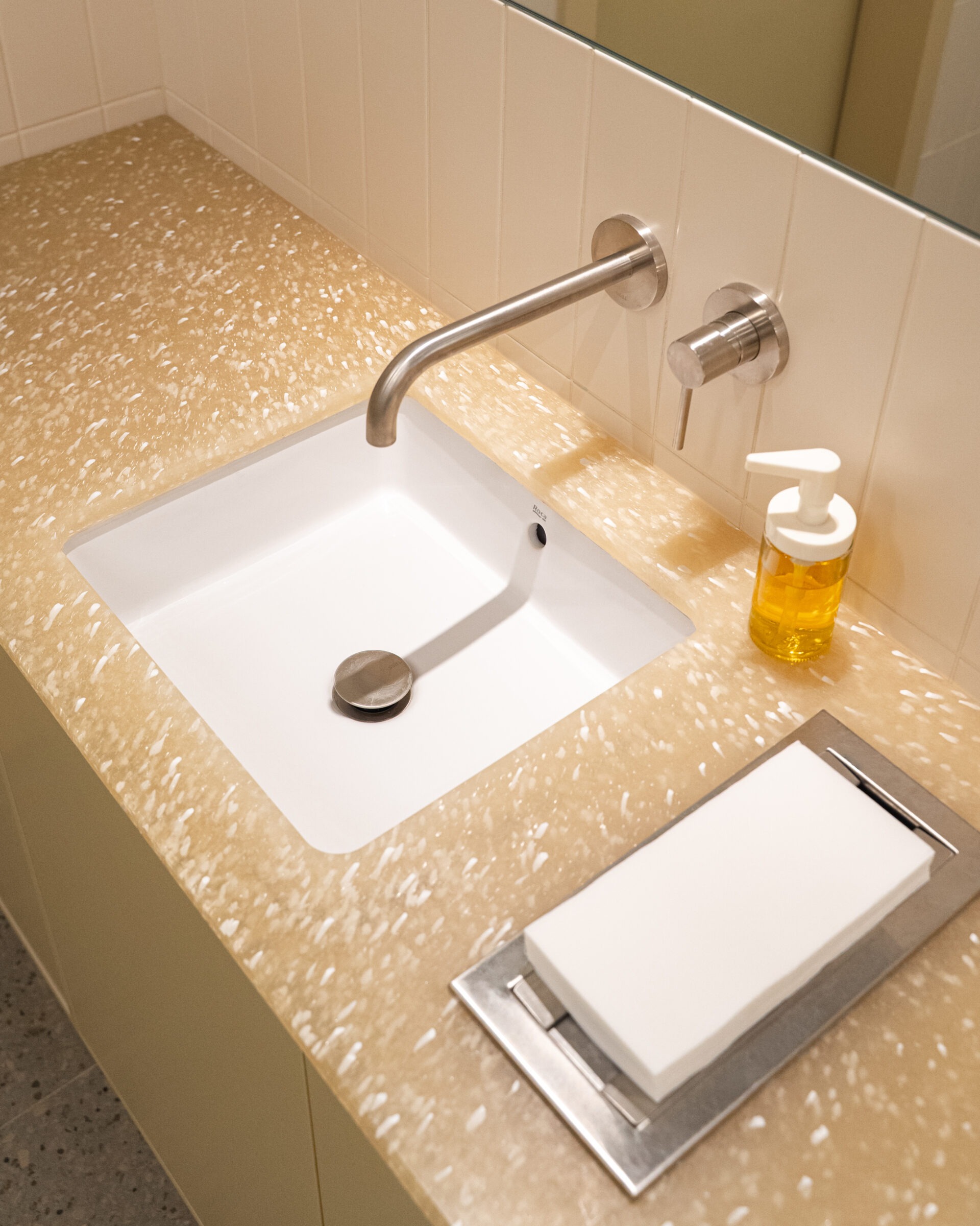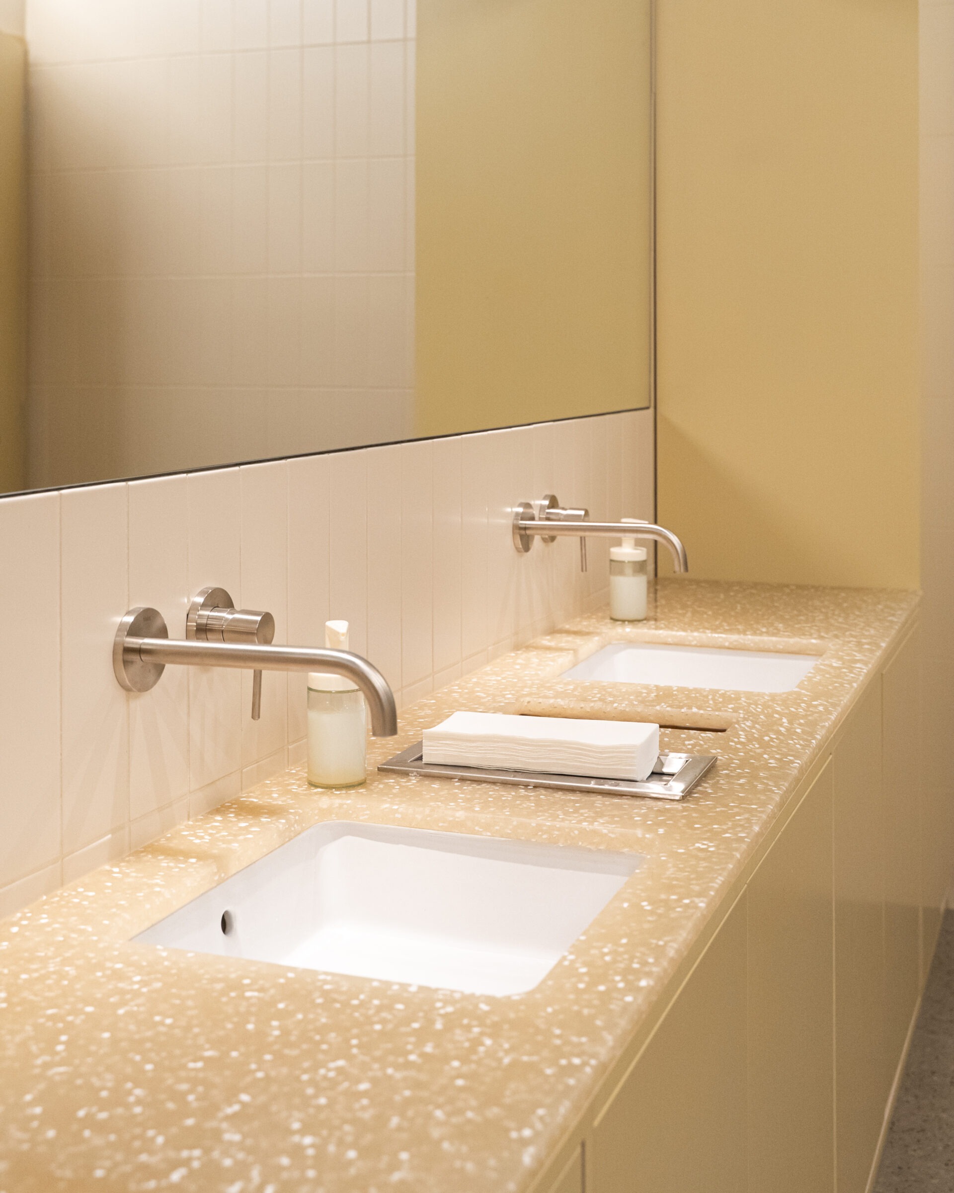 Interestingly, regular visitors often don’t even notice that the material is recycled plastic at first glance. However, it consistently captures the attention of architects, designers, and journalists who appreciate its origin, concept, and technical execution. For a new establishment that has only been open for a short time, this is a natural progression.