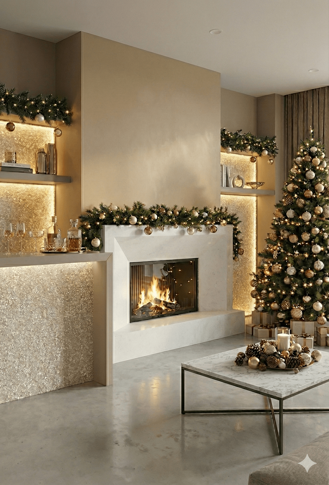 Certain textures from our palette—such as Onyx, Marble, Champagne, and Milk—when combined with warm LED backlighting, can create a wonderfully cozy Christmas atmosphere.